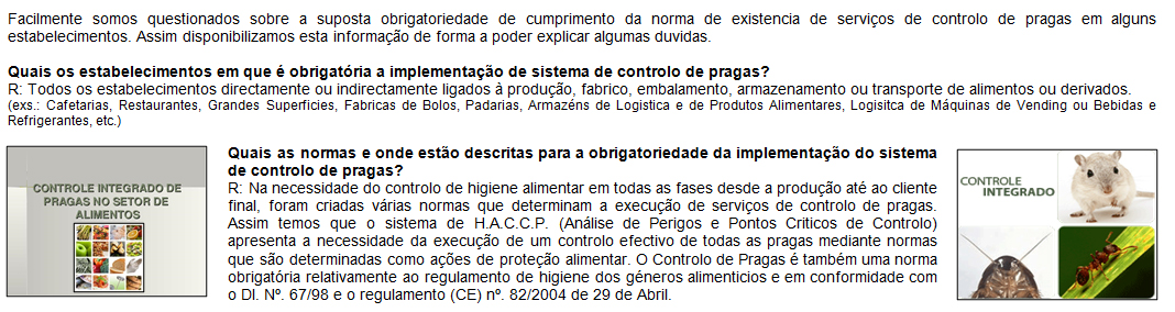 Início | Desinfestação | Higiene | Insectocaçadores | Controle e Conservação Madeiras | Parceiros | Contactos